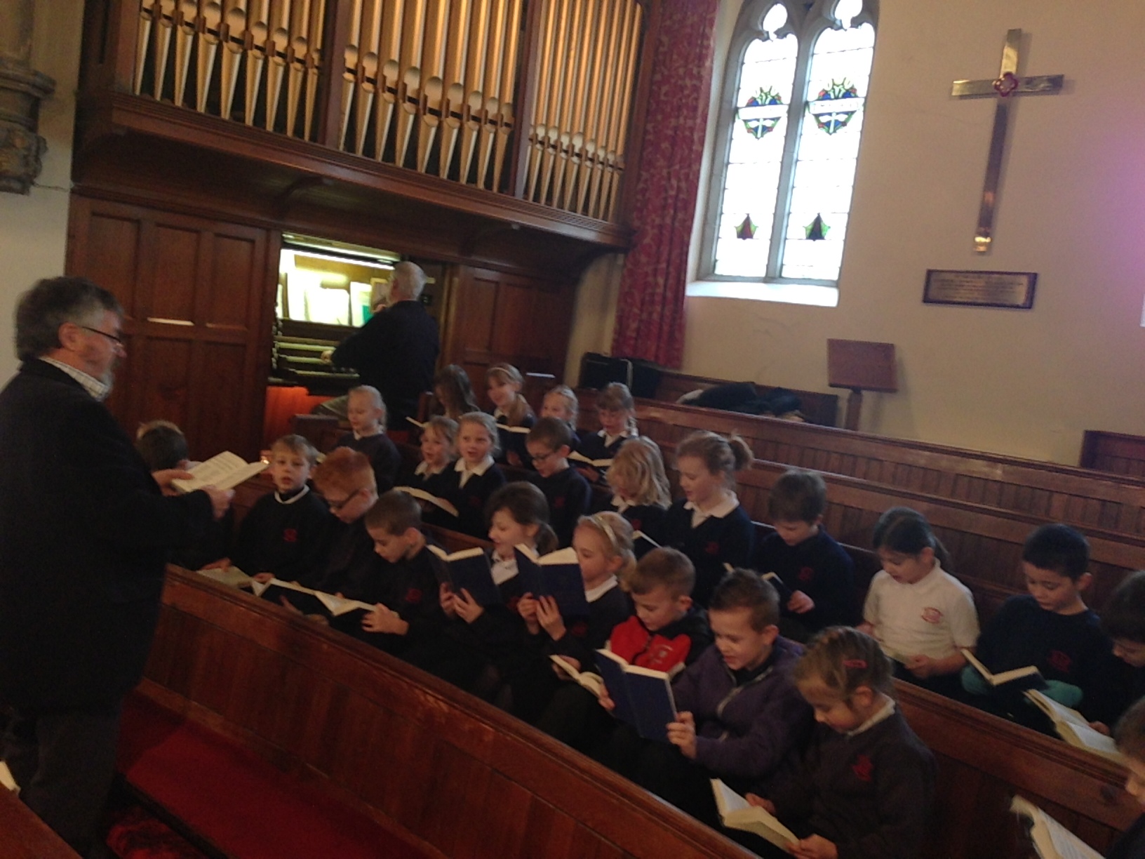 After a short introduction to the story of Jesus, and the life of a church, the children all took part in a quiz. They searched around the church for clues to the questions on their clipboards, talking with adults who were helping, and asking questions. They had a detailed exploration of the stained glass window, because they are going to draw that as an art project back at school.