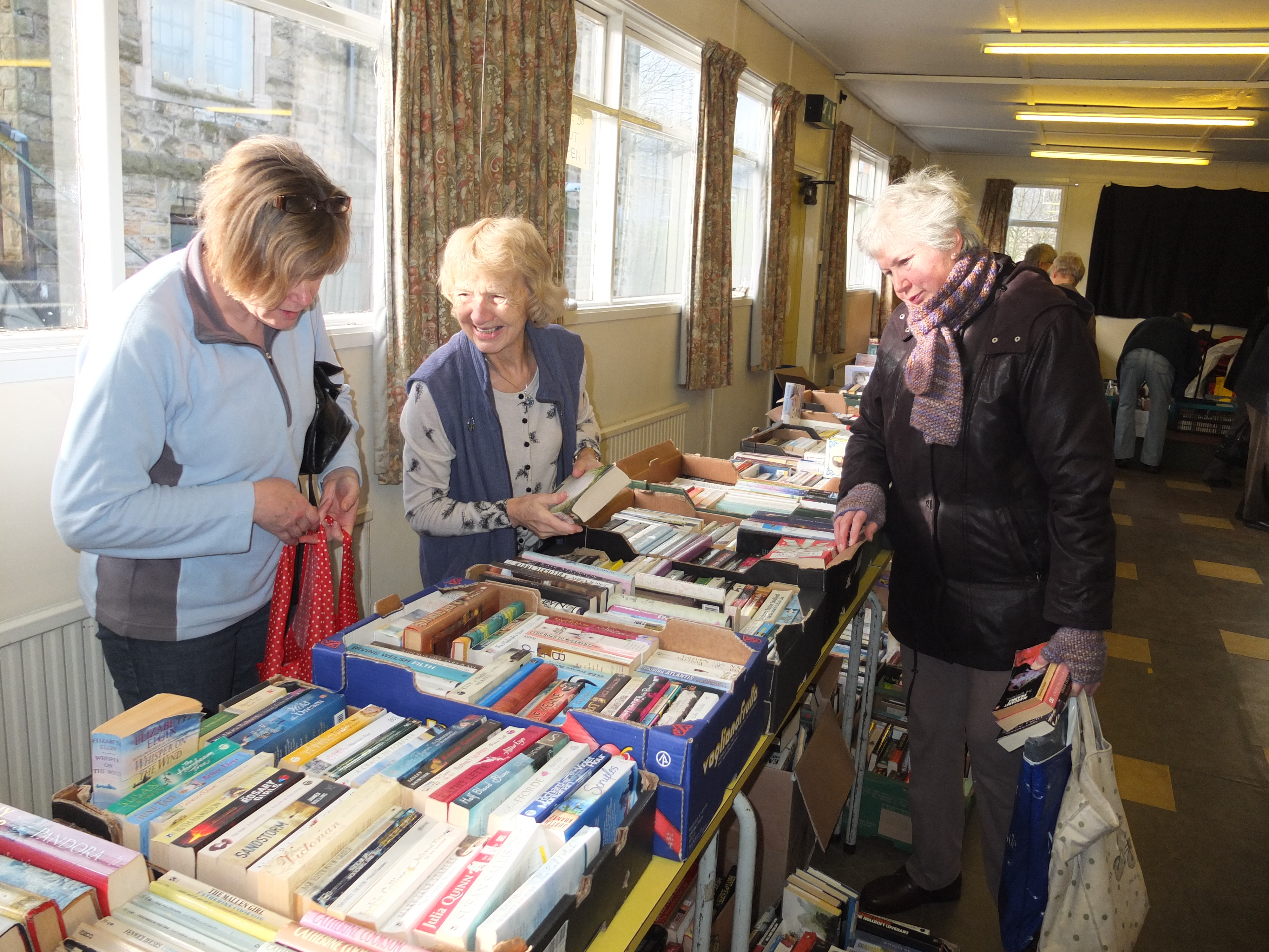 We aimed to raise £300 at our first book fair. We actually raised over £1100. What a phenomenal success. The cafe was a roaring success; you couldn’t get a seat most of the day. People worked so hard on sorting the books and helping visitors around. The dealer came and cleared it all in one go. Dorothy said “Even if hadn’t been a financial success, which it was, it was a great social success.” And she was quite right. Over 200 people from the town and around came in during the day. Thanks to Green’s the greengrocers, for all the fruit boxes. Brilliant!