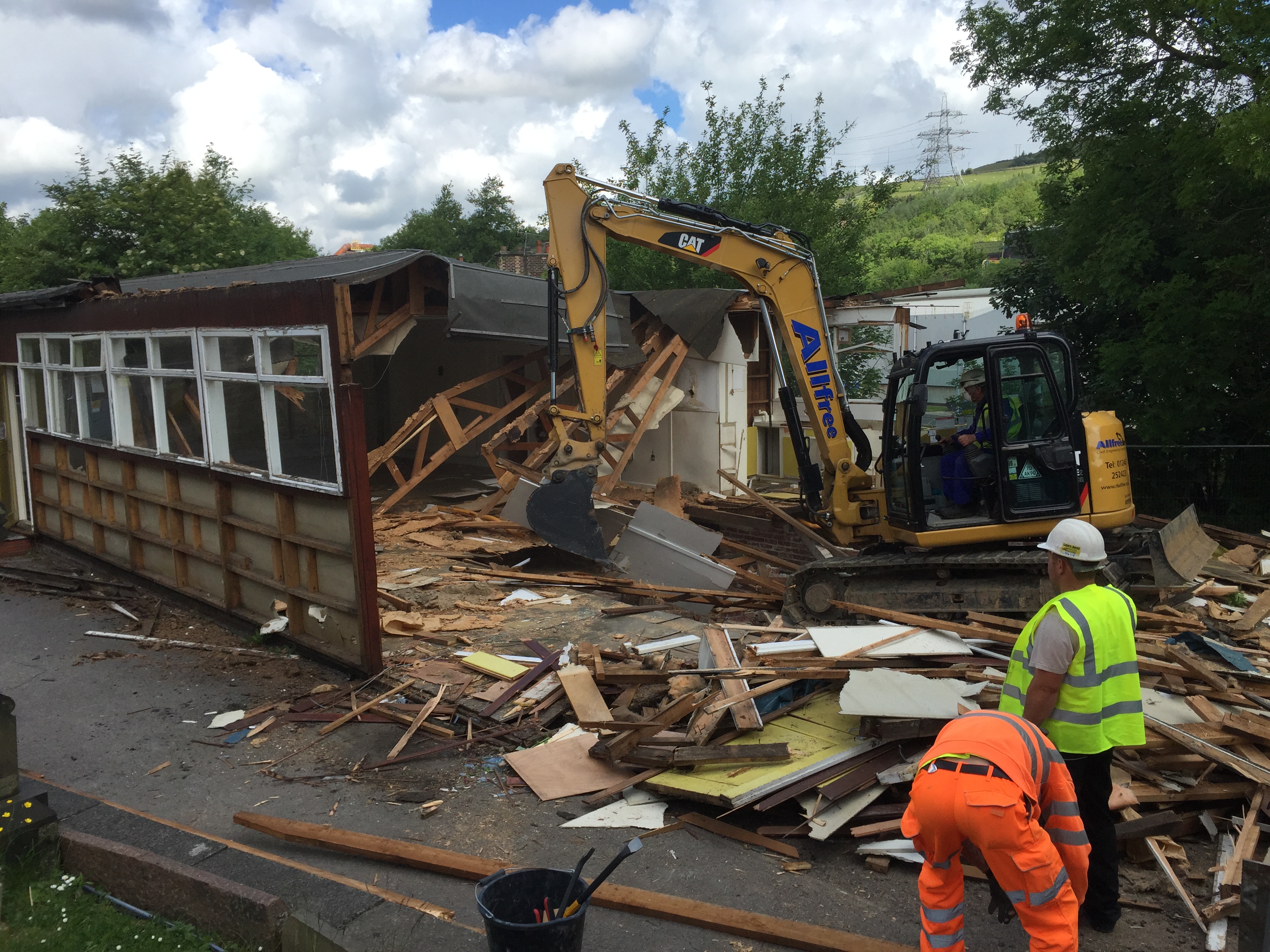 The subcontractors moved in on Monday morning and they expect to clear the old hall by Wednesday. Then the same sub-contractors will move on to lower the ground levels, and prepare the foundations and the under-pinning.