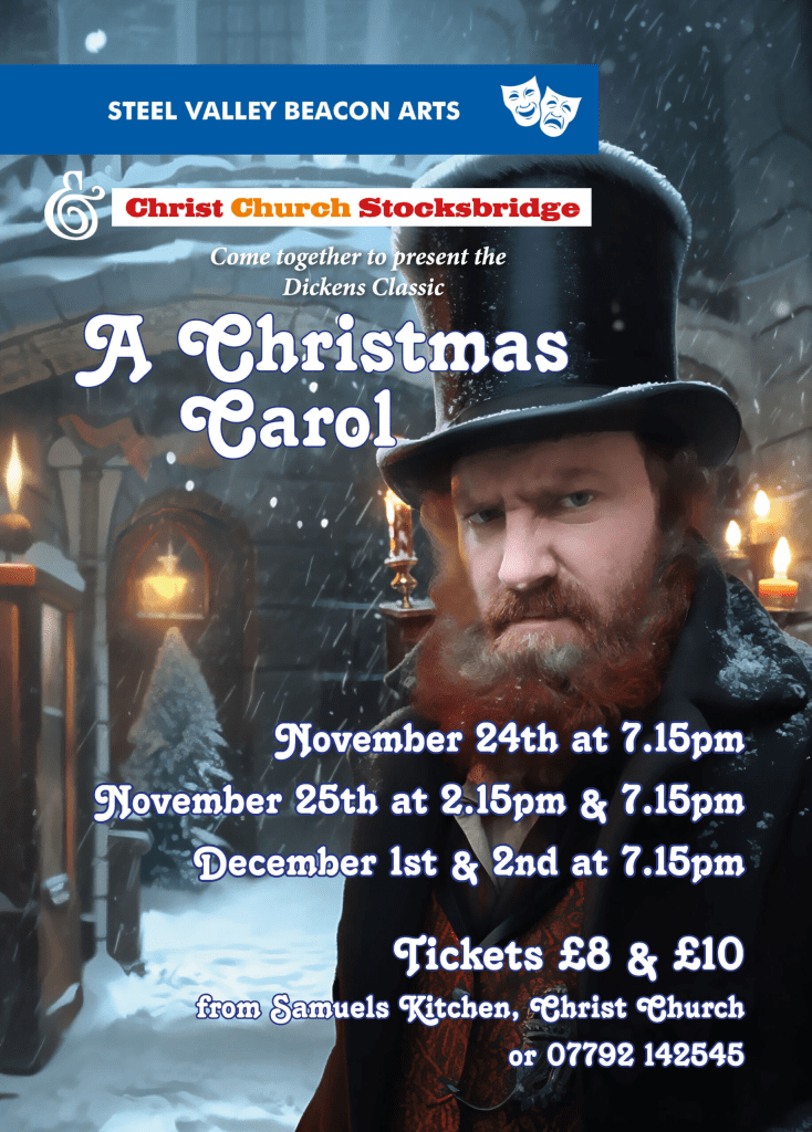 In December Steel Valley Beacon Arts and Christ Church staged their joint production of the musical version of Charles Dickens A Christmas Carol. A cast of 80 supported by many others backstage and behind the scenes joined to bring together a very successful and well received production over 5 performances.